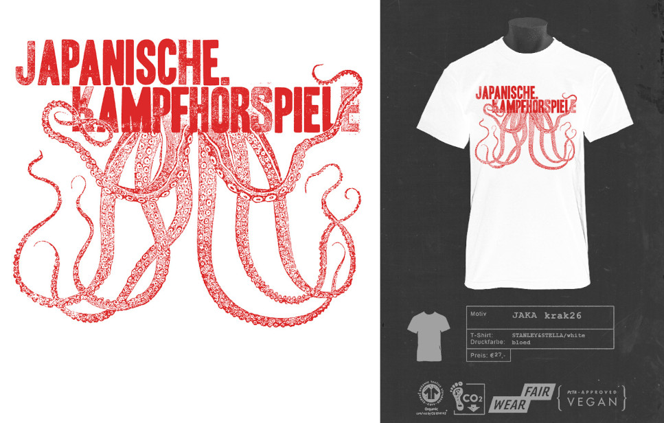 Angeregt hat den Nachdruck Fan Magnus, der einige Monate nach dem Erwerb seines JAKA JOUTH-Shirts 2020 einen internistischen Notfall gehabt hatte, bei dem die Rettungskräfte statt des Shirts lieber sein Leben retteten - weshalb er eben nun ein neues braucht. Drucken lassen werden wir das Shirt in allen Größen, da Alter und Jugend ja einander nicht ausschließen. Unser Trommler jedenfalls behauptet, dass er schon, bevor er 18 geworden ist, 18 gewesen wäre, und es seitdem sei. Vorbestellen könnt ihr das JOUTH-Shirt ab sofort (> japanischekampfhorspiele.bandcamp.com ). Geliefert wird es, wenn Maik es gedruckt hat.